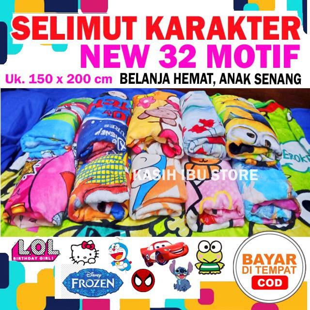 Selimut dengan gambar motif 3 dimensi yang baru dan desain baru beraneka motif karakter kartun anak yang menarik dan motif lainnya.